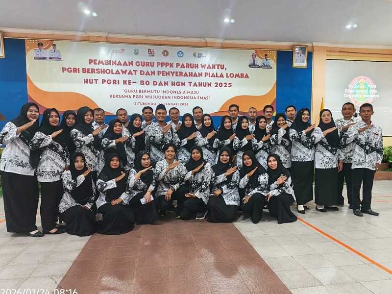 Situbondo – Bapak Syamsul Arifin, S.Pd, guru dari SD Negeri 1 Lamongan, mengikuti kegiatan Pembinaan Guru PPPK Paruh Waktu dan Pemberian Hadiah Lomba dalam rangka HUT ke-80 PGRI dan Hari Guru Nasional (HGN) Tahun 2025. Kegiatan tersebut dilaksanakan di Gedung Graha Cendekia PGRI Kabupaten Situbondo, pada hari Sabtu 24 Januari 2O26.
